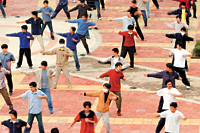 時(shí)至今日,交大校園已經(jīng)恢復(fù)了平靜,但這種平靜不似以往長(zhǎng)假學(xué)生離校后的爽快。一位交大同學(xué)對(duì)記者說(shuō),原來(lái)校園里到處都是人,現(xiàn)在該走的都走了,校園反而是最安全的地方。操場(chǎng)上,一些沒(méi)有離校的大學(xué)生做著各種體育鍛煉。
