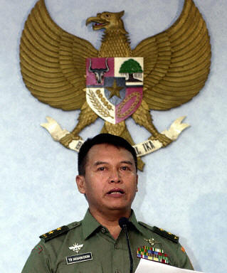 印尼總統(tǒng)軍事秘書(shū)哈桑努丁少將宣讀由梅加瓦蒂總統(tǒng)簽署的總統(tǒng)令決定,從19日凌晨零點(diǎn)開(kāi)始在印尼最西部的亞齊省實(shí)施戒嚴(yán)令。