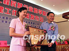 中新社廣州五月三十一日電(王華鄧劍平)廣東民營企業(yè)致富先助學(xué),向希望工程捐款設(shè)立專項(xiàng)助學(xué)基金。今天下午,廣州富力地產(chǎn)集團(tuán)率先向希望工程捐贈(zèng)一千五百萬元人民幣,設(shè)立希望工程民營企業(yè)助學(xué)基金的首個(gè)專項(xiàng)命名基金。