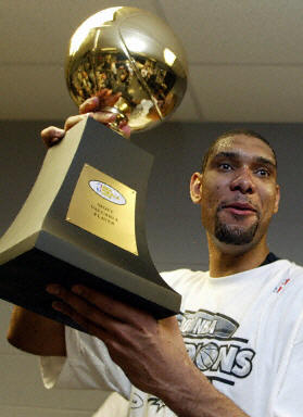 這也是馬刺隊(duì)史上第二座總冠軍,鄧肯獲選最有價(jià)值球員(MVP)。鄧肯毫無意外拿下決賽最有價(jià)值球員獎,他在這個系列戰(zhàn)中,平均攻下二十四點(diǎn)二分,抓下十七個籃板,送出五點(diǎn)三次助攻以及五點(diǎn)三次阻攻,其中季后賽總阻攻數(shù)一百三十一次,刷新NBA季后賽紀(jì)錄,而今天單場八次阻攻,也追平了總冠軍賽單場阻攻紀(jì)錄。