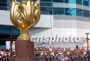 慶祝香港回歸祖國六周年的升旗禮,7月1日早上在香港灣仔金紫荊廣場舉行,整個升旗儀式簡短而莊重。中新社記者 錢興強 攝