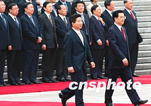 在談到半島形勢時,胡錦濤闡述了中國政府對朝核問題的原則立場,強調(diào)中國始終致力于維護半島的和平與穩(wěn)定,堅持半島無核化,堅持走通過對話和平解決的道路,主張關注和解決朝鮮的安全關切。