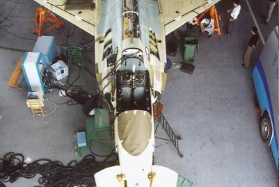 要想一睹“超七”的真顏可不是一件簡單的事:進入成飛試飛站之前,工作人員就提醒記者種種注意事項;通過武警層層把關(guān)的大門后,試飛場左側(cè)的一機庫門前又見到兩名武警持槍而立……走進機庫,“這就是‘超七’試飛站!彪S行的工作人員輕聲告訴記者。