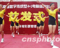 七月十二日,海南省率先在全國推出“四加一”體育彩票新玩法。在海口金世紀(jì)廣場舉行的首發(fā)儀式上,模特跳舞表演助興。作者:王辛莉