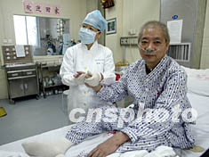 4月18日因參與治療SARS患者而感染的北京人民醫(yī)院檢驗科細(xì)菌學(xué)專家王賀,經(jīng)過多家醫(yī)院搶救治療已經(jīng)奇跡般康復(fù)。8月12日,氣色頗佳的王賀在人民醫(yī)院康復(fù)病房接受按摩治療。王賀是做了氣管切開插管手術(shù)的北京SARS患者中,僅存活的四名患者之一。中新社記者:任晨鳴