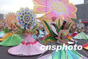 第十三屆青島國(guó)際啤酒節(jié)舉行盛大的狂歡巡游活動(dòng),由青島旅游學(xué)校學(xué)生裝扮的名貴花卉方隊(duì)構(gòu)成一幅姹紫嫣紅的美麗畫卷。中新社記者:張煒