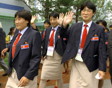 朝鮮體育代表團(tuán)共有221名成員,包括運(yùn)動(dòng)員和記者。他們是乘兩架朝鮮專機(jī)抵達(dá)釜山機(jī)場(chǎng)的。