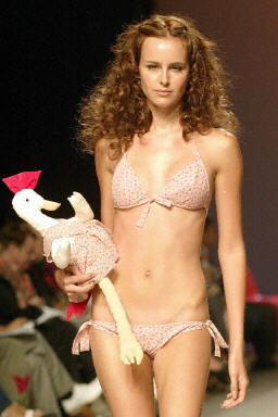 9月8日,在西班牙巴塞羅納舉行了2004時(shí)尚春夏裝展示,模特現(xiàn)場(chǎng)展示了西班牙設(shè)計(jì)師TCN Toton Comella的性感比基尼。