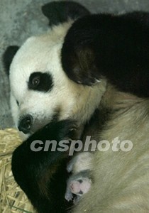 北京動(dòng)物園8月24日出生的一只大熊貓幼崽,在初次做母親的“妞妞”十七天精心護(hù)養(yǎng)下度過(guò)最危險(xiǎn)階段,如今小家伙已經(jīng)長(zhǎng)出大熊貓?zhí)赜械暮谏珬l紋并不停地吱吱叫喊企圖脫離母親的懷抱。中新社記者:任晨鳴