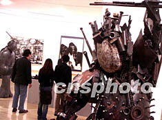 北京金秋時節(jié)舉辦的首屆國際美術(shù)雙年展上,中國年青美術(shù)家運用多種鋼鐵材料焊接創(chuàng)作的古代將軍塑像,別具匠心。中新社記者:賈國榮