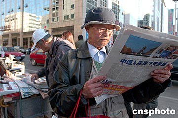 組圖:北京市民關(guān)注“神舟”五號(hào)成功發(fā)射