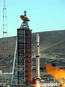 中巴地求資源衛(wèi)星0二星和“創(chuàng)新一號(hào)”小衛(wèi)星二十一日在太原衛(wèi)星發(fā)射中心由“長(zhǎng)征四號(hào)乙”運(yùn)載火箭一箭雙星成功發(fā)射升空。中新社記者 孫自法 攝