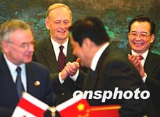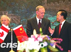 克雷蒂安贊同溫家寶對兩國關(guān)系的評價(jià)和提出的建議,他說,加中在各領(lǐng)域合作關(guān)系發(fā)展順利,兩國人民間的友誼不斷加深,加方對此感到滿意。加方希望雙邊貿(mào)易在今后七年內(nèi)再翻一番,期待與中方加強(qiáng)在能源、保險(xiǎn)、環(huán)保、農(nóng)業(yè)等領(lǐng)域的合作,也歡迎更多中國人到加拿大旅游、留學(xué)。