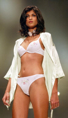 圖:模特在新德里現(xiàn)場展示最新流行內(nèi)衣
