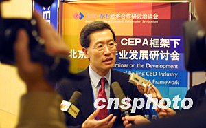 CEPA框架下北京CBD產(chǎn)業(yè)發(fā)展研討會(huì)二十四日在北京飯店召開(kāi),香港貿(mào)易發(fā)展局基建業(yè)發(fā)展咨詢委員會(huì)主席劉炳章在會(huì)后表示:北京CBD的發(fā)展應(yīng)吸取香港中環(huán)商業(yè)區(qū)的經(jīng)驗(yàn)教訓(xùn),作好策略性規(guī)劃,協(xié)調(diào)商業(yè)用地與公共空間的均衡發(fā)展。中新社記者:廖文靜