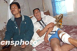 二十二日十一時(shí)左右,正在馬祖外公海捕漁的“閩連漁”2336號(hào)漁船遭遇馬祖海巡隊(duì)一艘海巡艇靠近查看。當(dāng)“閩連漁”2336號(hào)收完漁網(wǎng)返航時(shí),馬祖海巡艇上連續(xù)向“閩連漁”2336號(hào)船左舷和左駕駛艙開(kāi)了二十多槍?zhuān)瑔T陳理寶、黃自團(tuán)被子彈擊中左大腿。下午四時(shí)三十七分,“閩連漁”2336號(hào)返回連江,兩名受傷船員被送往丹陽(yáng)醫(yī)院搶救。圖為船長(zhǎng)劉錦濱(左)和受傷船員陳理寶講述當(dāng)時(shí)情形。作者:王浩東