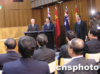 圖:胡錦濤和霍華德聯(lián)合會(huì)見(jiàn)中澳記者