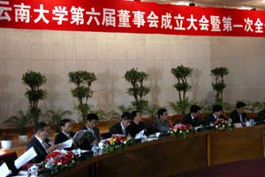 云南大學(xué)校長(zhǎng)吳松向新一屆董事會(huì)報(bào)告了第五屆董事會(huì)成立五年來該校的建設(shè)與發(fā)展情況。吳松說,五年來,云南大學(xué)全體師生同心協(xié)力,遵循“立足邊疆、服務(wù)云南、辦出特色”的辦學(xué)思路,全面推進(jìn)學(xué)校的各項(xiàng)建設(shè)事業(yè),使過去的五年成為歷史上改革力度最大,建設(shè)速度最快、發(fā)展勢(shì)頭最好的時(shí)期。
