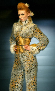 模特在27日烏克蘭基輔舉辦的“二00三流行季”時裝展上展示本土設(shè)計師的作品。此次有21位時裝設(shè)計師參加為期四天的時尚作品展示。