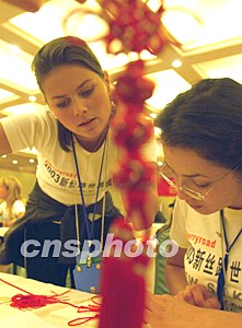 組圖:世界模特大賽佳麗學(xué)做中國結(jié)