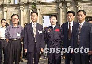 中國首飛航天員楊利偉及中國載人航天飛行代表團六日到澳門著名的大三巴牌坊參觀。 中新社記者:李剛