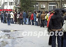 今天是研究生報名的第一天,在北京大學、師范大學等高校的研究生報名點都排起了長隊,最長的隊伍有數百米。過去報名需要審查登記表,今天只是照相和領取準考證。與往年不同的是,在職人員報考時,工作人員不在要求他們出示單位證明,報名登記表上也無需單位公章。