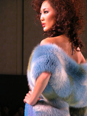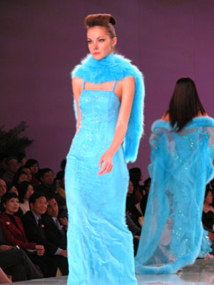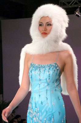 中國(guó)國(guó)際時(shí)裝周NE·TIGER 2003/2004高級(jí)皮草晚裝,個(gè)性奢華寶藍(lán)系列。