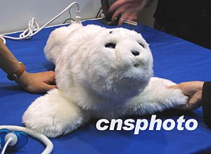 二十二日在日本東京進行的國際機器人展上。一種模擬海豹幼獸形象而研制的人工智能寵物頗受歡迎。據(jù)介紹,這個取名為“帕羅”的機器寵物具備一定的觸覺、嗅覺和聽覺功能,并能夠以此而與人進行互動交流,特別適合于長期住院的兒童患者和福利設(shè)施中的高齡者的心理扶助。中新社記者:王健