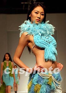 浙江工程學院國際時裝技術(shù)學院學生錢麗霞的作品《漣漪》二十三日在北京獲得第二屆中國針編織時裝設(shè)計大賽頭獎。中新社記者:史利