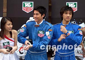 香港流行音樂組合Shine,三日在時代廣場出席一品牌腕表記者會時,獲大會贈送最新款運動型腕表。中新社記者:譚達(dá)明
