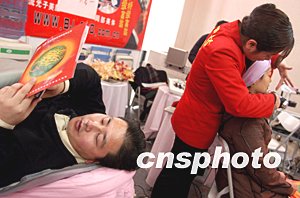 第九屆中國(guó)國(guó)際美發(fā)美容節(jié)之美發(fā)美容用品博覽會(huì)十二月十日在北京開(kāi)幕,眾多男士也光臨展會(huì)親身體驗(yàn),如今美容已不再是女性的專(zhuān)利。中新社記者:張宇