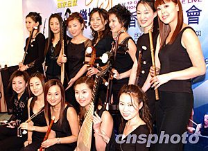 日前在日本演出獲得成功的女子十二樂坊,十二月十五日在香港舉行新聞發(fā)布會,該樂坊將在香港進行專場演出。圖為十二位樂坊美女各持樂器亮相。中新社記者:錢興強
