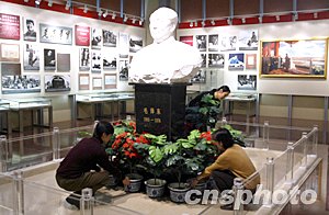 2003年12月26日是毛澤東誕辰110周年,位于北京天安門廣場上的毛主席紀念堂將舉辦多項活動隆重紀念,紀念堂中的“毛澤東展室”經(jīng)過精心布置準(zhǔn)備接待參觀者。中新社記者:任晨鳴