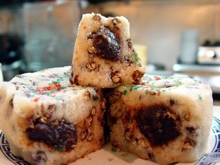 據(jù)臺(tái)灣媒體報(bào)道,1973年圓山飯店的“北方小館”開幕,那時(shí)的廚師就已經(jīng)開始要不定期為宋美齡準(zhǔn)備紅豆松糕。這一款紅豆松糕由糯米粉蒸煮,里頭包著濃濃香香的紅豆沙,外頭再鋪點(diǎn)紅棗與青木瓜絲的松糕,吃起來(lái)不甜不膩、口感松軟,因此深受宋美齡喜愛。
