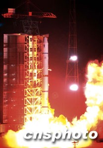 北京時(shí)間三十日凌晨三時(shí)許,中國(guó)“雙星計(jì)劃”的第一顆衛(wèi)星“探測(cè)一號(hào)”在西昌衛(wèi)星發(fā)射中心由“長(zhǎng)征二號(hào)丙”改進(jìn)型運(yùn)載火箭發(fā)射升空。至此,二00三年中國(guó)六次航天發(fā)射全部告捷,也為中國(guó)航天年畫上一個(gè)圓滿的句號(hào)。本次衛(wèi)星發(fā)射是中國(guó)運(yùn)載火箭迄今為止最高的一次飛行,“探測(cè)一號(hào)”也因此成為中國(guó)目前軌道距地球最遠(yuǎn)的一顆衛(wèi)星。 中新社記者 張煒 攝