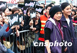 香港樂壇藝人氣組合TWINS成員元月十日出席在香港添馬艦廣場(chǎng)舉行的環(huán)球嘉年華“開心返來啦笑容大賞”活動(dòng),受到歌迷熱烈歡迎。中新社記者:錢興強(qiáng)