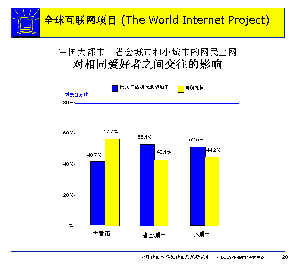 歡迎引用本調查報告的數(shù)據、圖表和結論。在所有引用本報告數(shù)據、圖表和結論的地方必須注明來源:“中國社會科學院社會發(fā)展研究中心2003年關于中國12城市互聯(lián)網使用狀況及影響的調查報告”或簡稱“中國社會科學院社會發(fā)展研究中心2003年互聯(lián)網報告”。