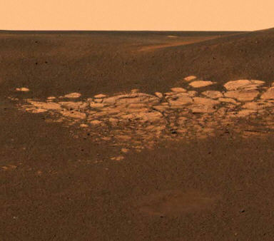 1月28日美國(guó)宇航局公布了利用“機(jī)遇”號(hào)火星車(chē)發(fā)回的數(shù)據(jù)合成的照片。這張高清晰度的火星照片清晰地記錄了裸露在火星地表的巖床!皺C(jī)遇”號(hào)預(yù)計(jì)將在下周鉆出著陸艙,開(kāi)始火星漫步探測(cè)。