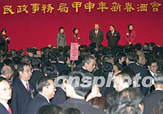 香港民政事務局二月六日在會展中心舉行新春酒會,香港特別行政區(qū)行政長官董建華、律政司司長梁愛詩、民政事務局局長何志平等出席酒會。中新社記者:錢興強