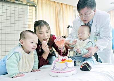 剖腹產(chǎn)后,令人驚喜的情景出現(xiàn)了———母親的非典癥狀逐漸解除,兩周后康復(fù),而誕下的雙胞胎楚楚和陽陽都沒有感染。