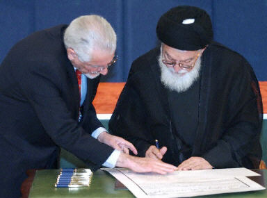 這個(gè)儀式原定上周五(5日)舉行,但伊拉克什葉派穆斯林最高精神領(lǐng)袖提出反對(duì),儀式不得不臨時(shí)取消。就在代表們星期一(3月8日)匯聚在巴格達(dá)的會(huì)議中心參加簽字儀式之際,巴格達(dá)中部發(fā)生了一系列大爆炸。