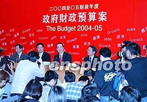 圖:香港財(cái)長唐英年發(fā)表首份財(cái)政預(yù)算案