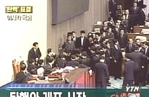 圖:韓國會投票表決通過彈劾案總統(tǒng)現(xiàn)場