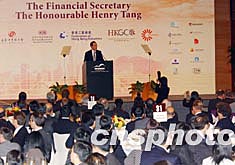 香港特別行政區(qū)財(cái)政司司長(zhǎng)唐英年,三月十五日在香港總商會(huì)舉行的午餐會(huì)上,回答商界人士提出的有關(guān)2004/2005年財(cái)政預(yù)算案問(wèn)題。 作者:錢(qián)興強(qiáng)