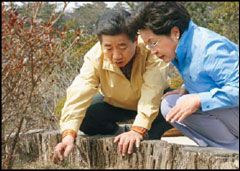 同時,彈劾案表決后第9天的21日,青瓦臺秘書室首次公開了總統(tǒng)在官邸拍攝的照片。這里包括盧武鉉總統(tǒng)身穿韓服閱讀文件或眺望窗外(上圖),身著夾克裝和夫人權(quán)良淑女士散布等身影。這是青瓦臺首席宣傳室認(rèn)為“總統(tǒng)停職”一周后有必要向外界公開總統(tǒng)在閑暇中進(jìn)行種種構(gòu)想。