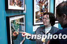 在北京植物園內展出的日本駐華大使夫人阿南史代的“京華名樹”個人攝影展,吸引了不少參觀者。四月七日,大使夫人阿南史代在現(xiàn)場親自為參觀者講解當時拍攝照片時的情景。中新社記者:盛佳鵬