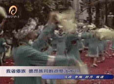 在德宏州府芒市,昨天一大早,長龍般的車隊和如潮的人流就把通往三臺山的道路堵塞得水泄不通,人們成群結(jié)隊爭先上山,采摘潑水節(jié)用的花枝。在山坡的空地上,伴著鏗鏘有力的象腳鼓聲,歡樂人群跳起了優(yōu)美的孔雀舞。而一些年紀稍大的則對起了山歌,以此表達相互的祝福和對幸福生活的贊美。在佳節(jié)里,傣族、德昂族男女老少都要穿上節(jié)日的盛裝趕大“擺”,舉行浴佛和相互潑水祝福。白天城鄉(xiāng)各地處處水花飛舞,笑語連天,一片歡騰,晚上村村寨寨唱傣戲,嘎秧弄,放孔明燈,徹夜不眠。