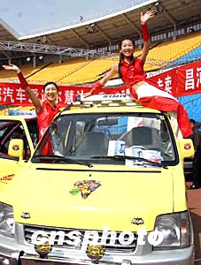 北京春季汽車大型展銷會四月十四日在工人體育場拉開帷幕,十萬元左右的新款國產(chǎn)經(jīng)濟(jì)型轎車引人矚目。中新社記者:張勤