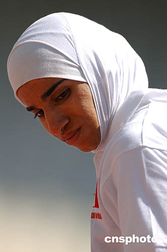 圖為巴林選手Rakia Al Gassra在女子100米比賽前觀看場(chǎng)地的畫(huà)面。