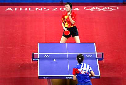 中新網(wǎng)8月21日電 剛剛結(jié)束的第28屆雅典奧運(yùn)會(huì)乒乓球女子單打半決賽第一場(chǎng)比賽中,中國(guó)選手張怡寧以4:1的總比分擊敗韓國(guó)選手率先進(jìn)行決賽。決賽將在北京時(shí)間8月22日晚舉行。